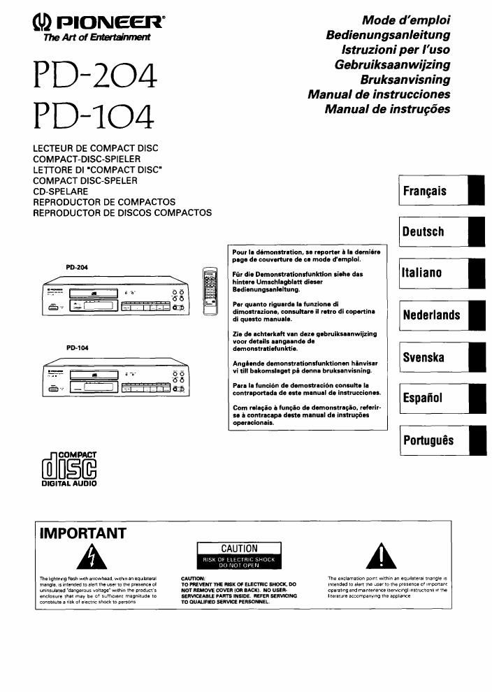 This is the 80 pages manual for pioneer pd 104 owners manual.