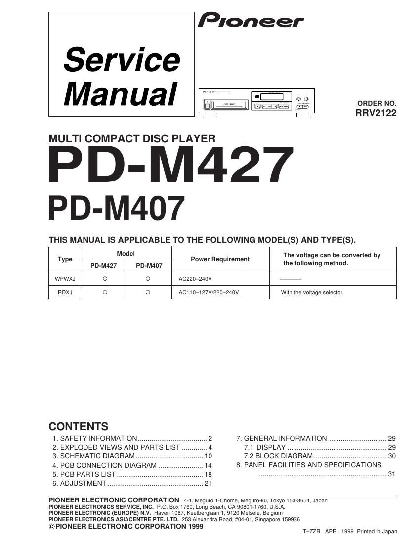Pioneer pdm 407 service manual