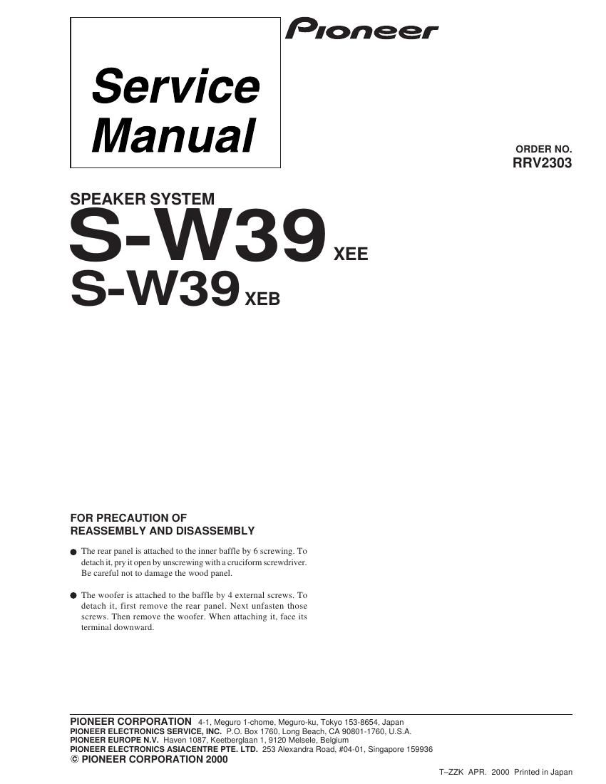 This is the 2 pages manual for pioneer sw 39 service manual.