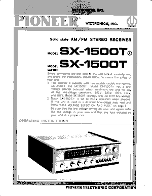 pioneer sx 1500 t owners manual |