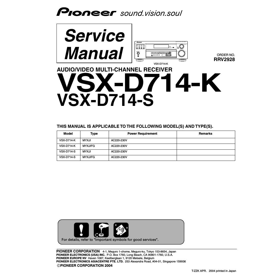 Pioneer vsxd 714 service manual
