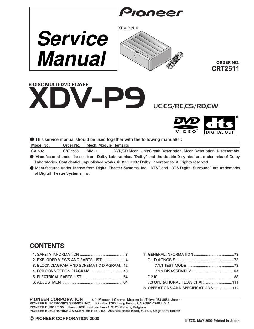 This is the 120 pages manual for pioneer xdvp 9 service manual.