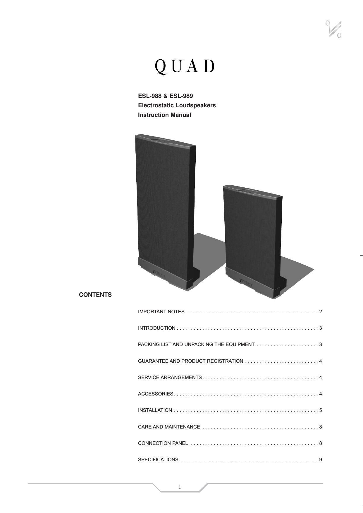This is the 12 pages manual for Quad ESL 988 Owners Manual.