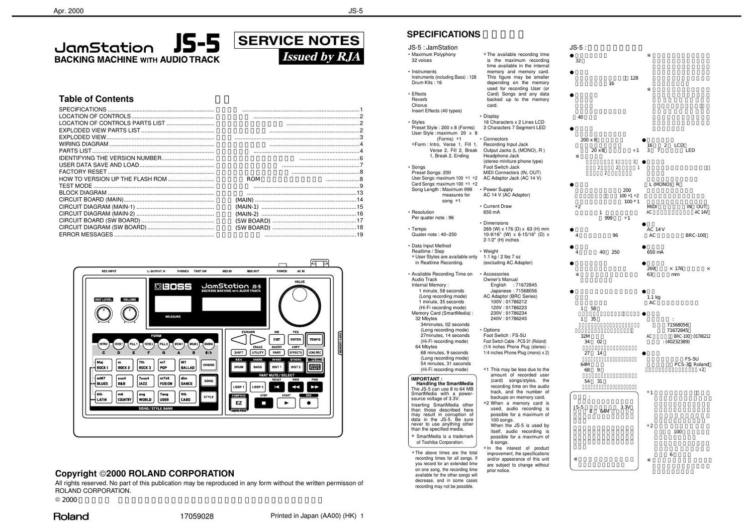 This is the 19 pages manual for ROLAND JS 5.