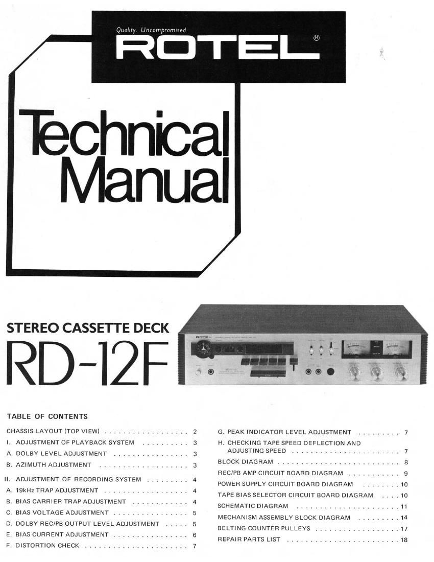 This is the 17 pages manual for Rotel RD 12F Service Manual.