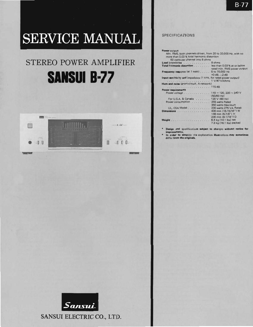 This is the 9 pages manual for Sansui B 77 Service Manual.