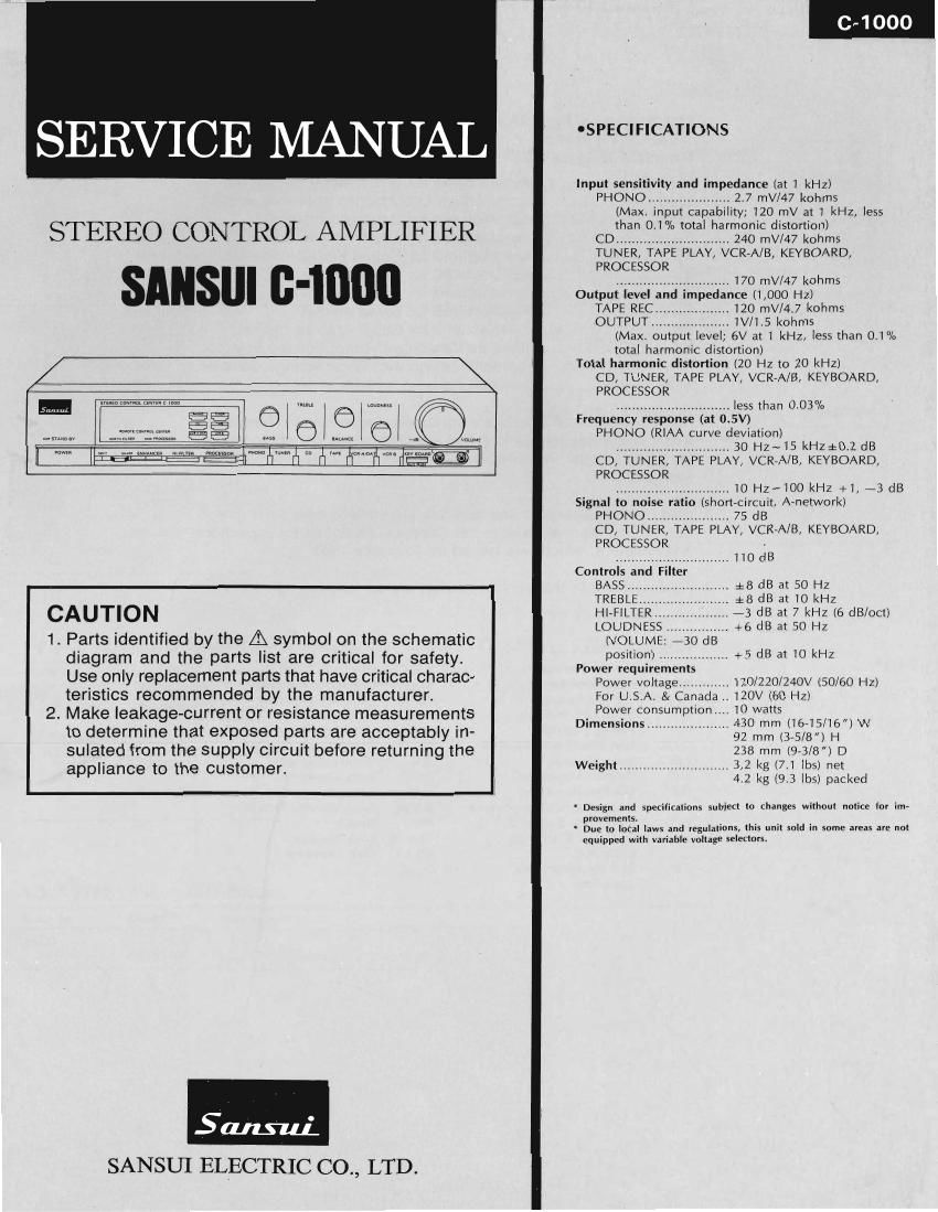 This is the 16 pages manual for Sansui C 1000 Service Manual.