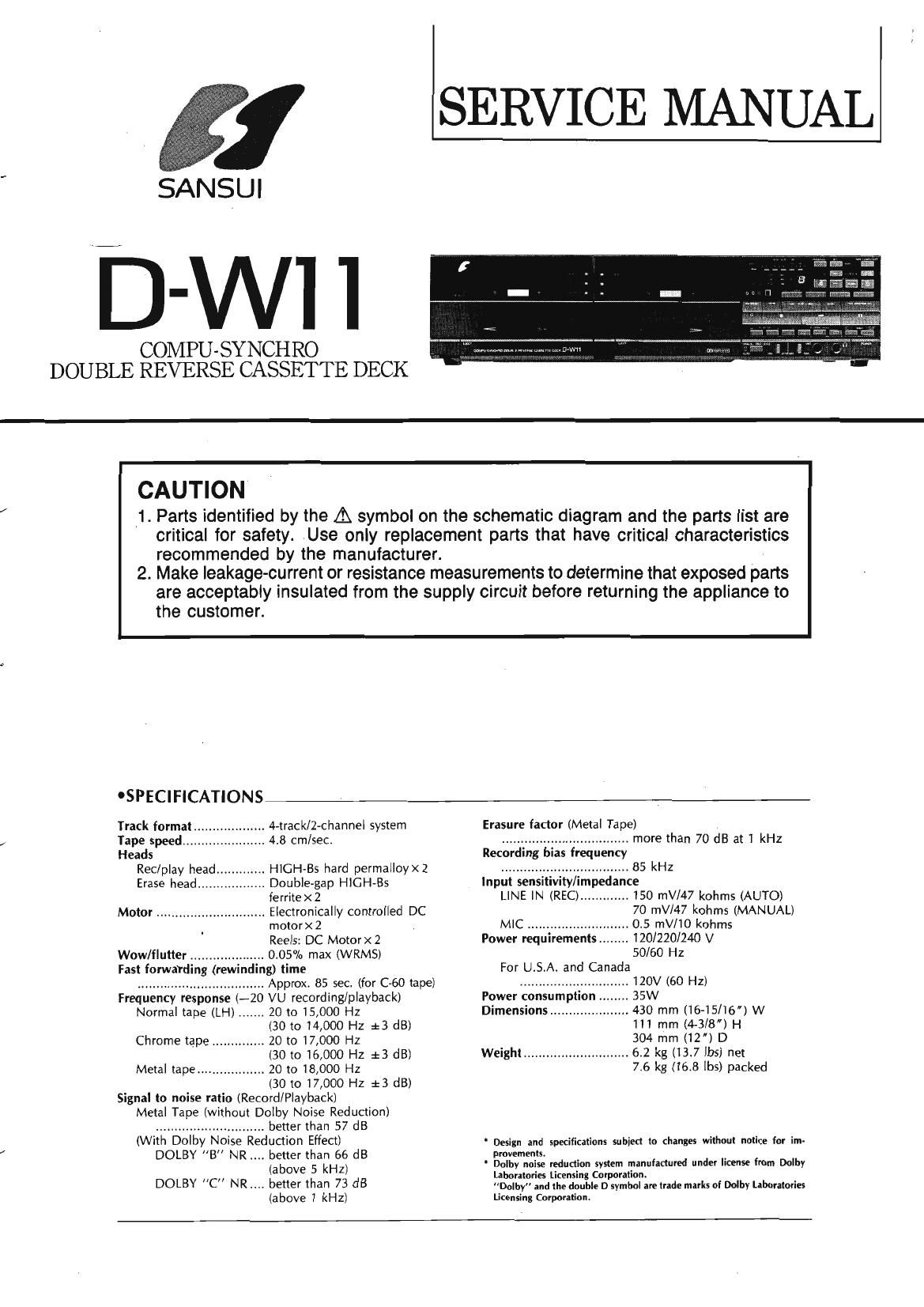 This is the 14 pages manual for Sansui D W11 Service Manual.