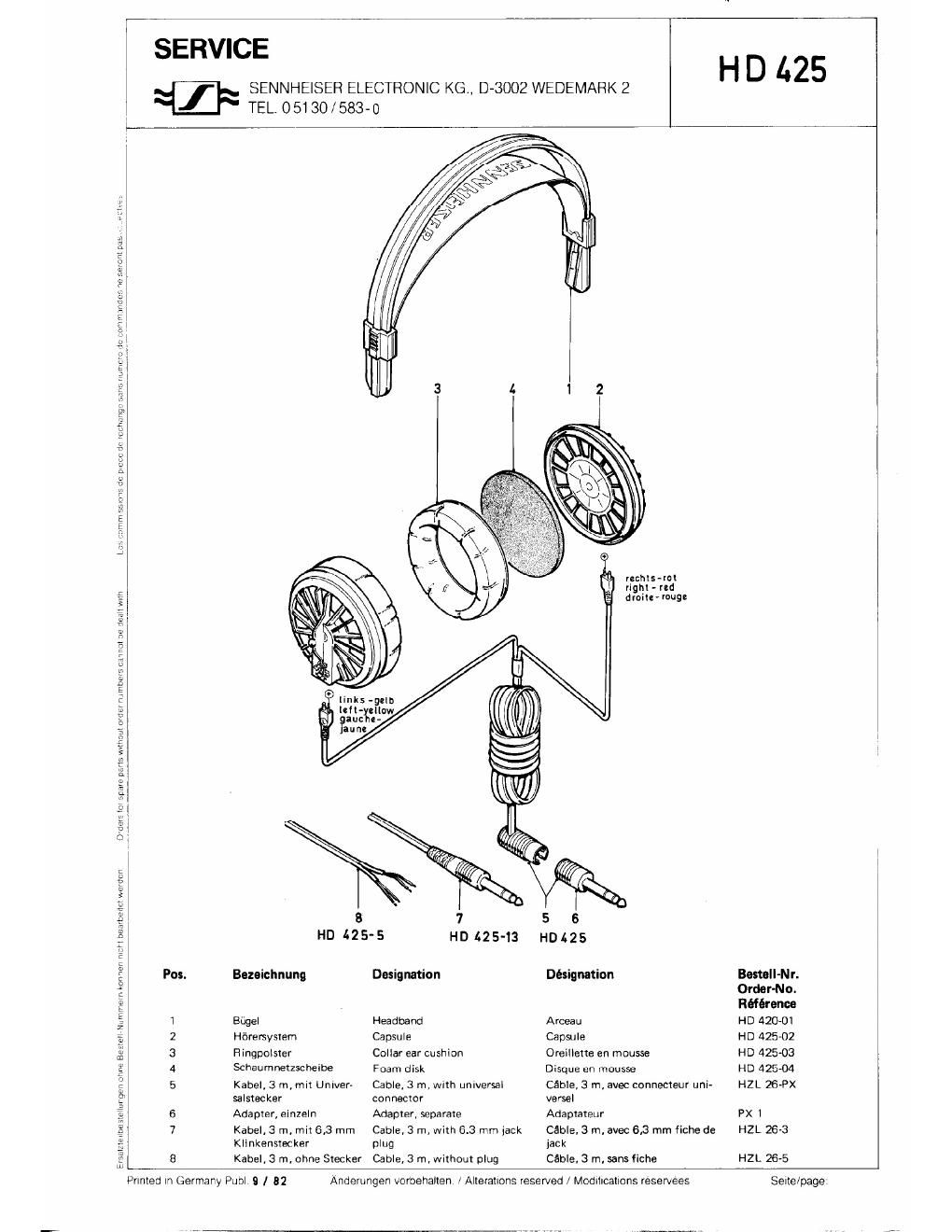 This is the 1 pages manual for sennheiser hd 425 service manual.