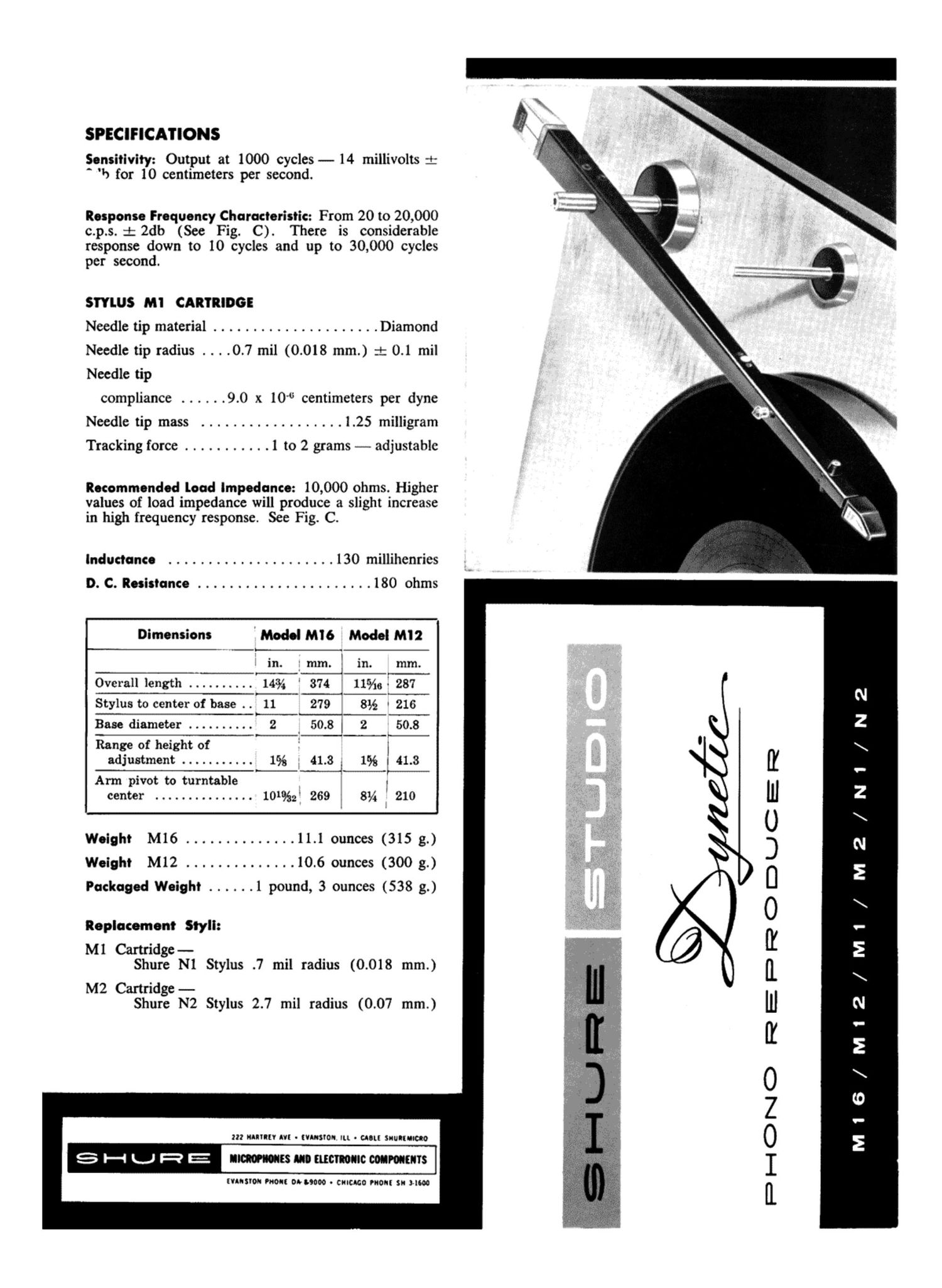 Shure m 12 owners manual
