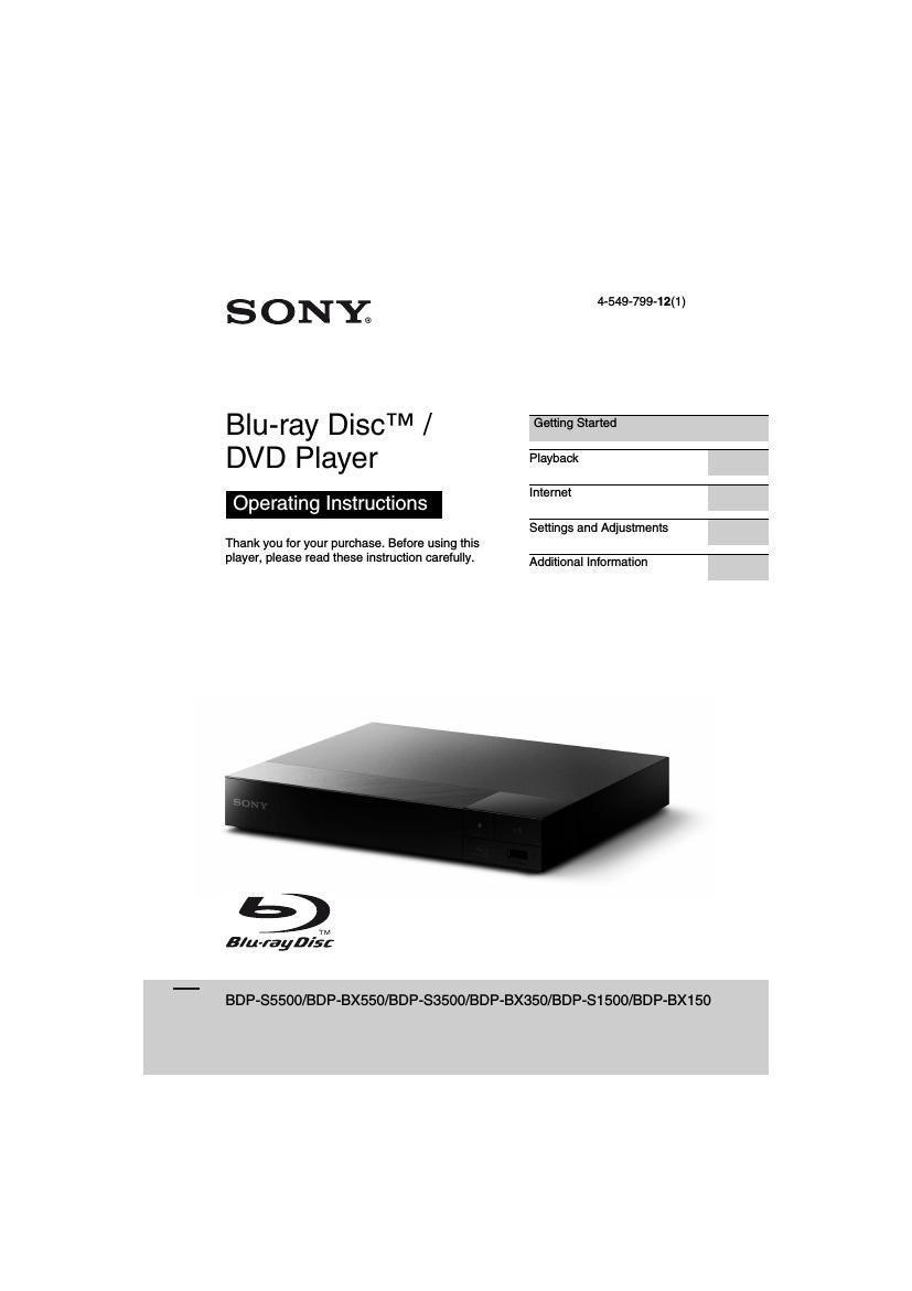 This is the 48 pages manual for Sony BDP BX550 Owners Manual.
