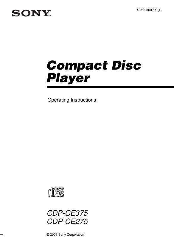 This is the 16 pages manual for Sony CDP CE275 Owners Manual.
