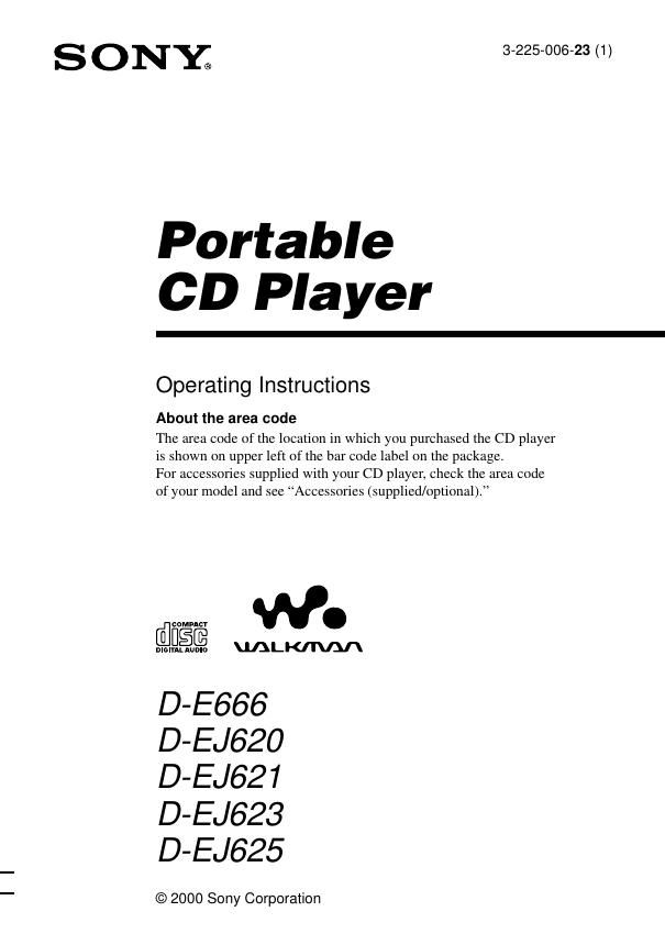 This is the 24 pages manual for sony d ej 625 owners manual.