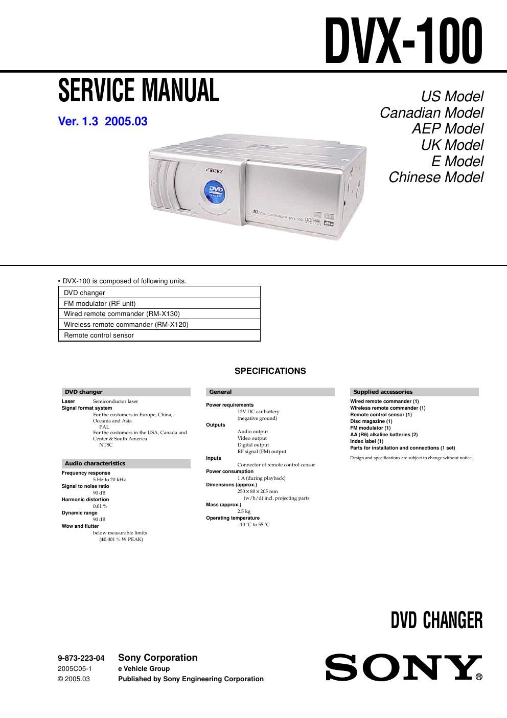 Sony dvx 100 service manual