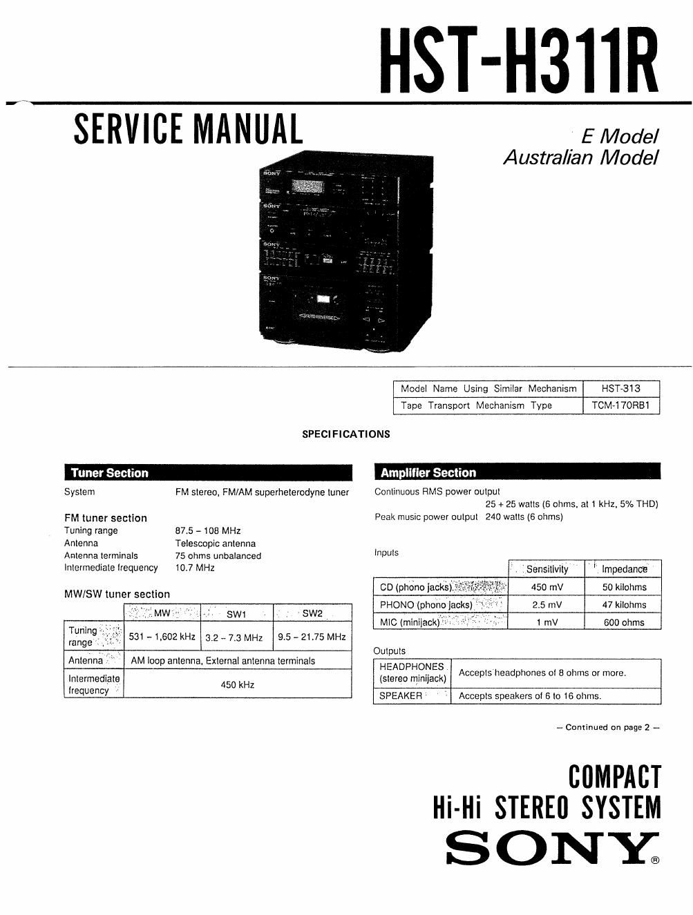 Sony hsth 311 r service manual