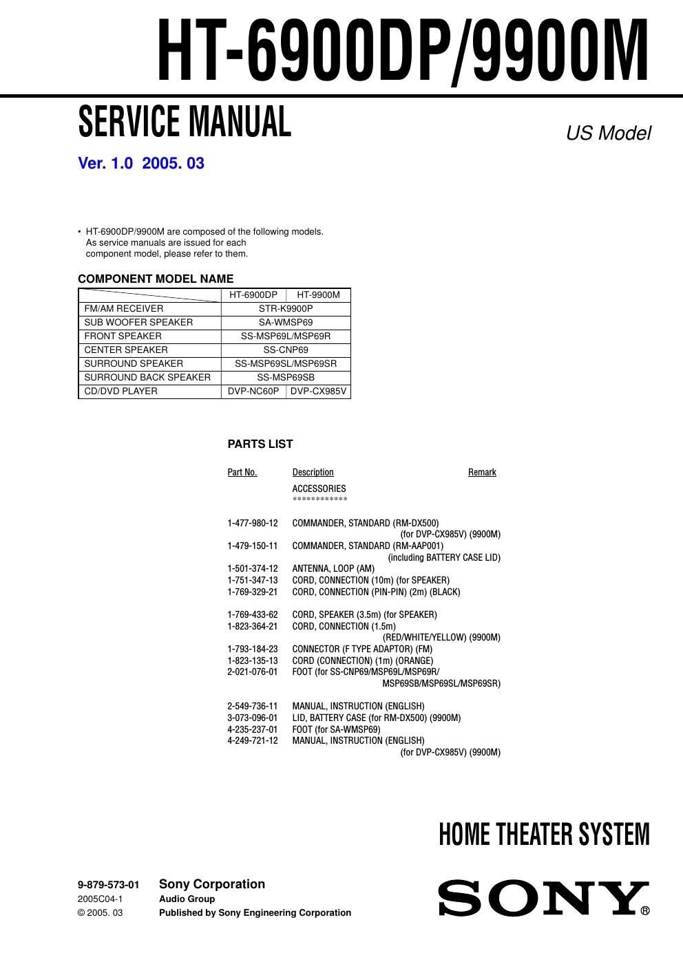 This is the 2 pages manual for sony ht 9900 m service manual.