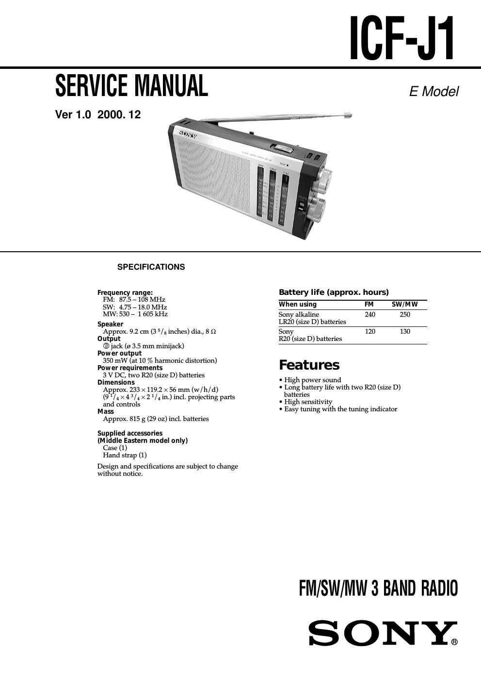 Sony icf j 1 service manual