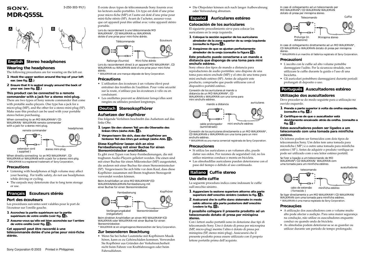 This is the 2 pages manual for sony mdr q 55 sl owners manual.