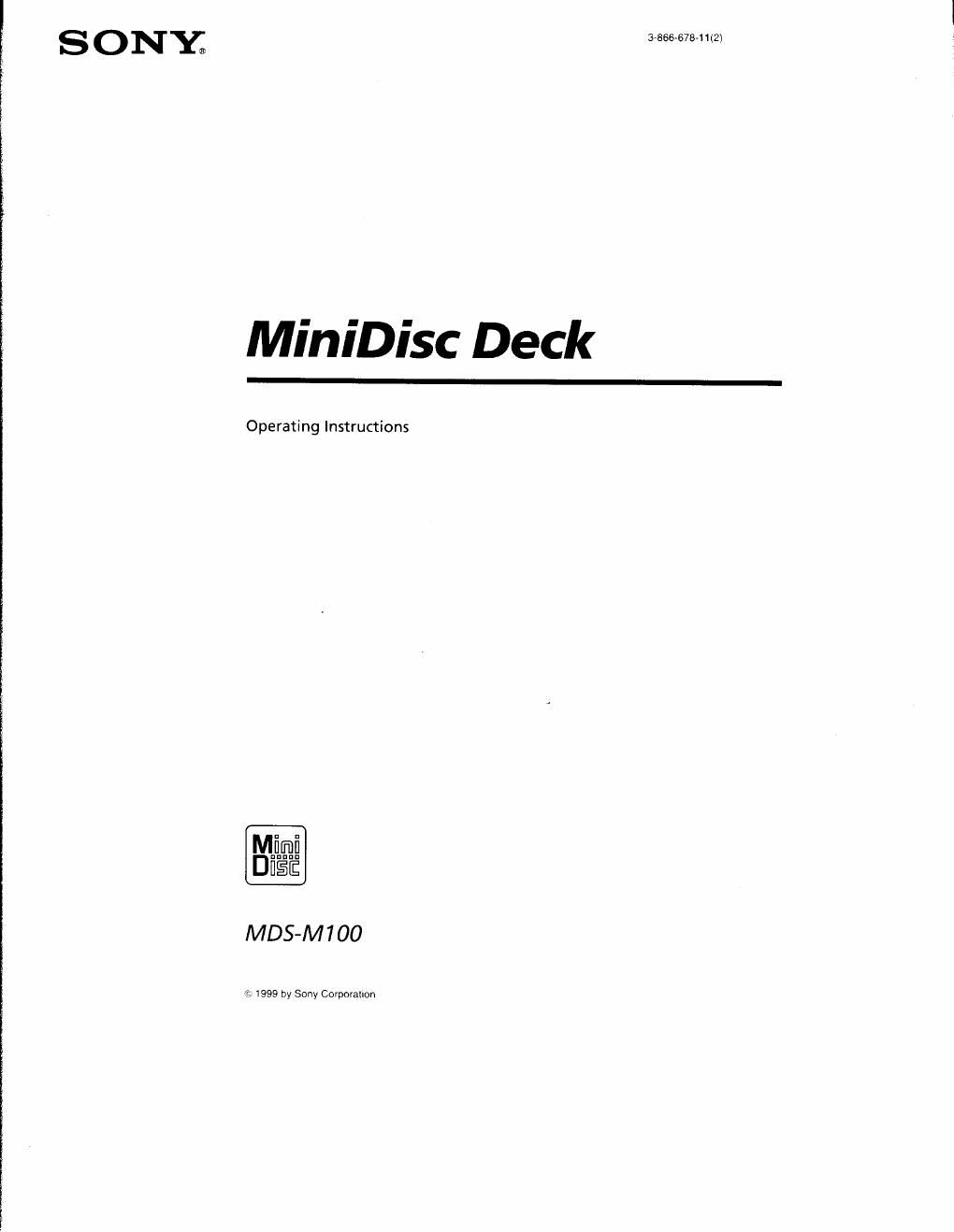 This is the 46 pages manual for sony mds m 100 owners manual.