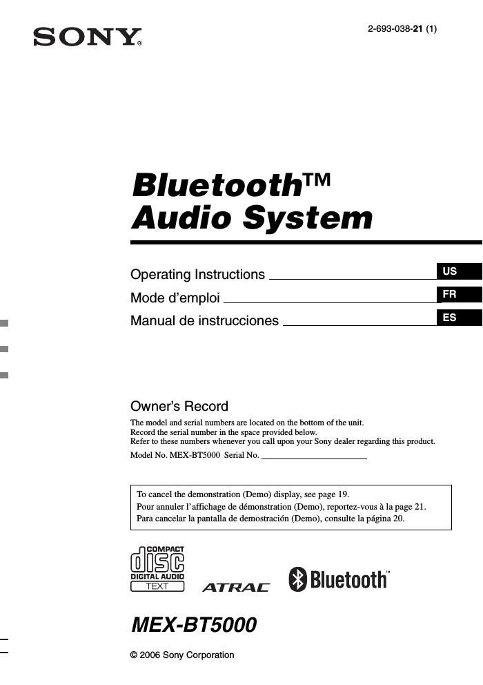 This is the 96 pages manual for sony mex bt 5000 owners manual.