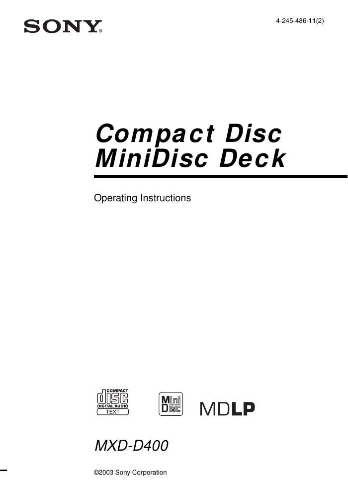 This is the 52 pages manual for sony mxd d 400 owners manual.