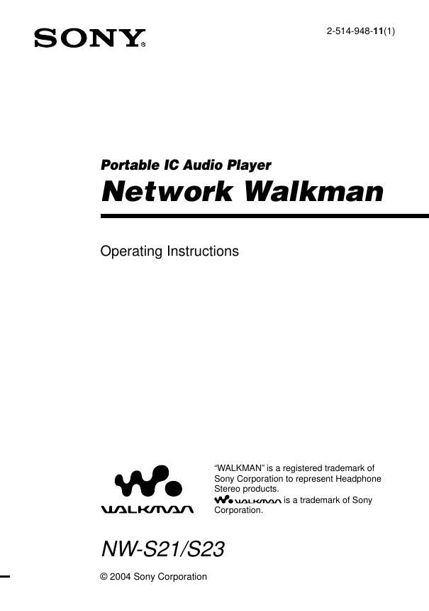 This is the 52 pages manual for sony nw s 23 owners manual.