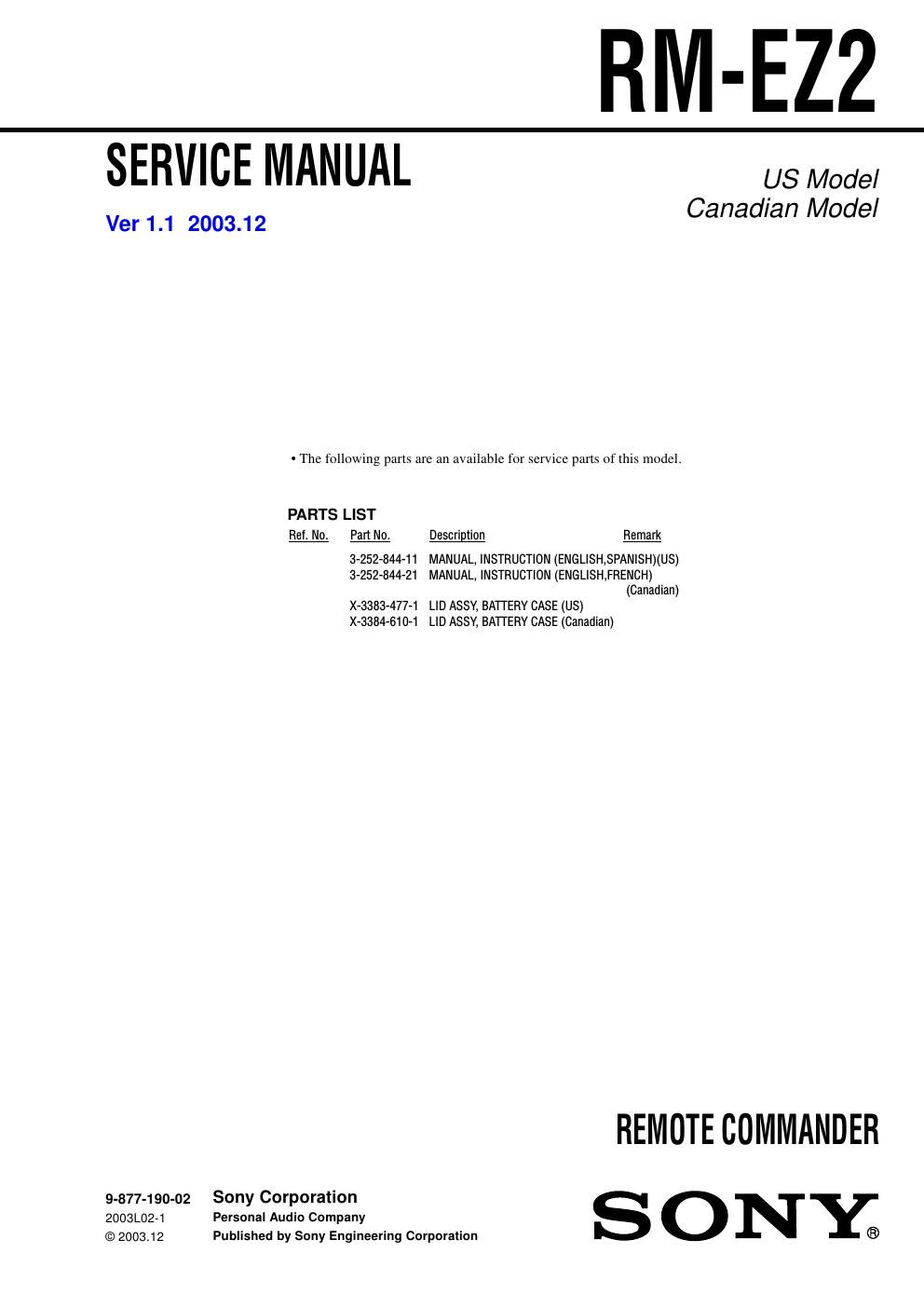 This is the 2 pages manual for sony rm ez 2 service manual.