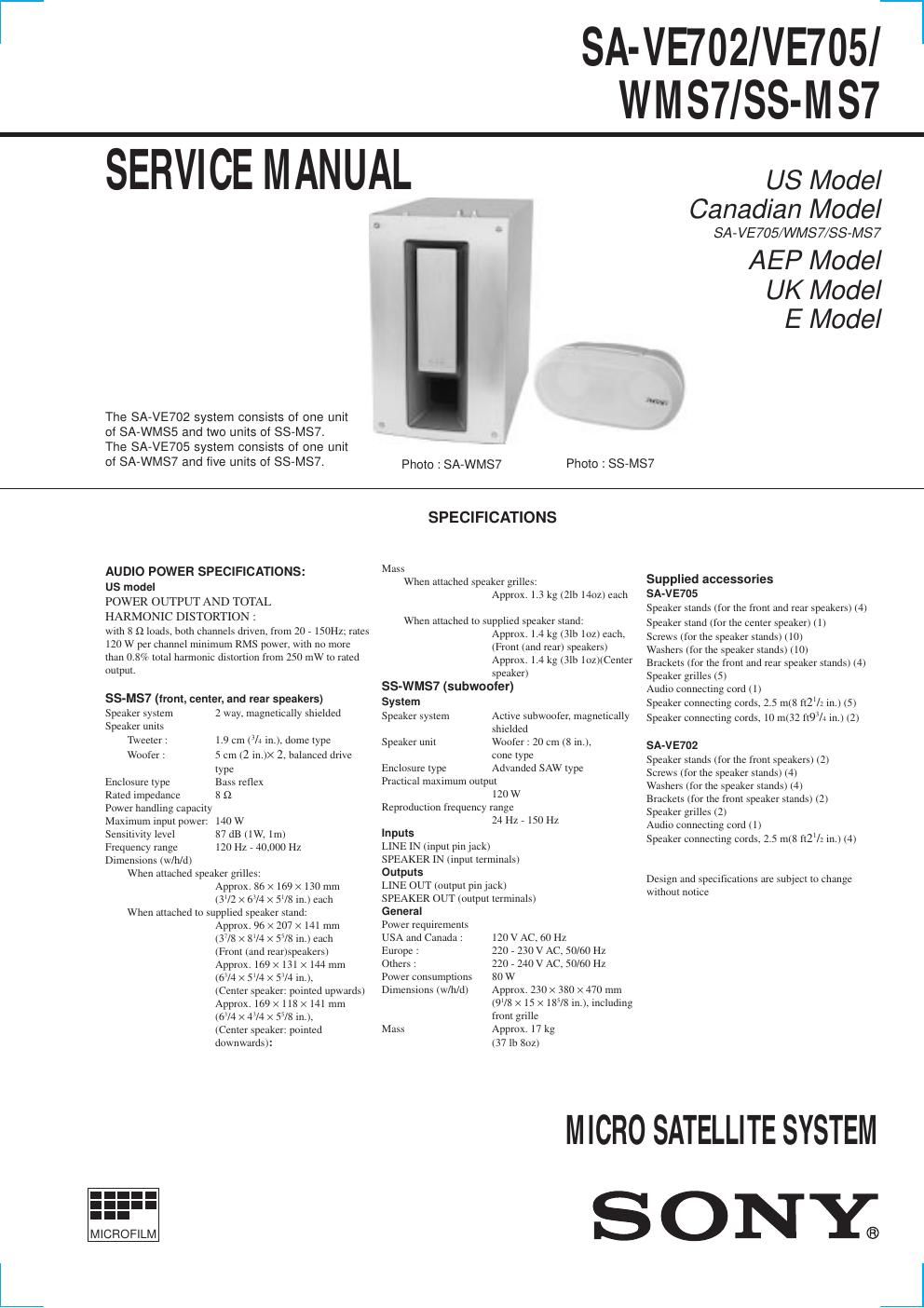 This is the 14 pages manual for sony sa ve 702 service manual.