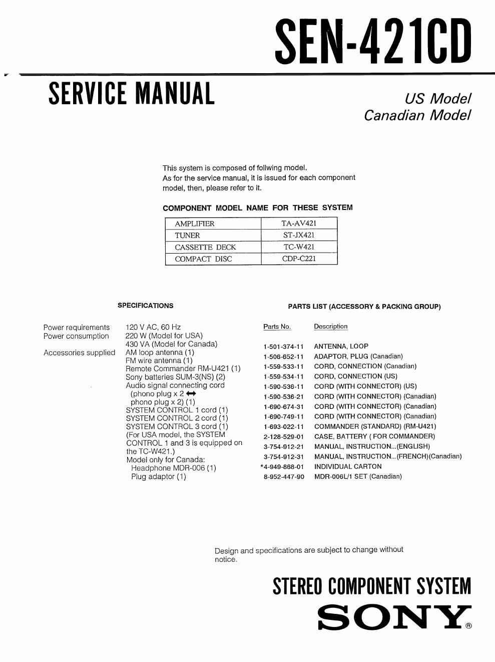 This is the 2 pages manual for sony sen 421 cd service manual.