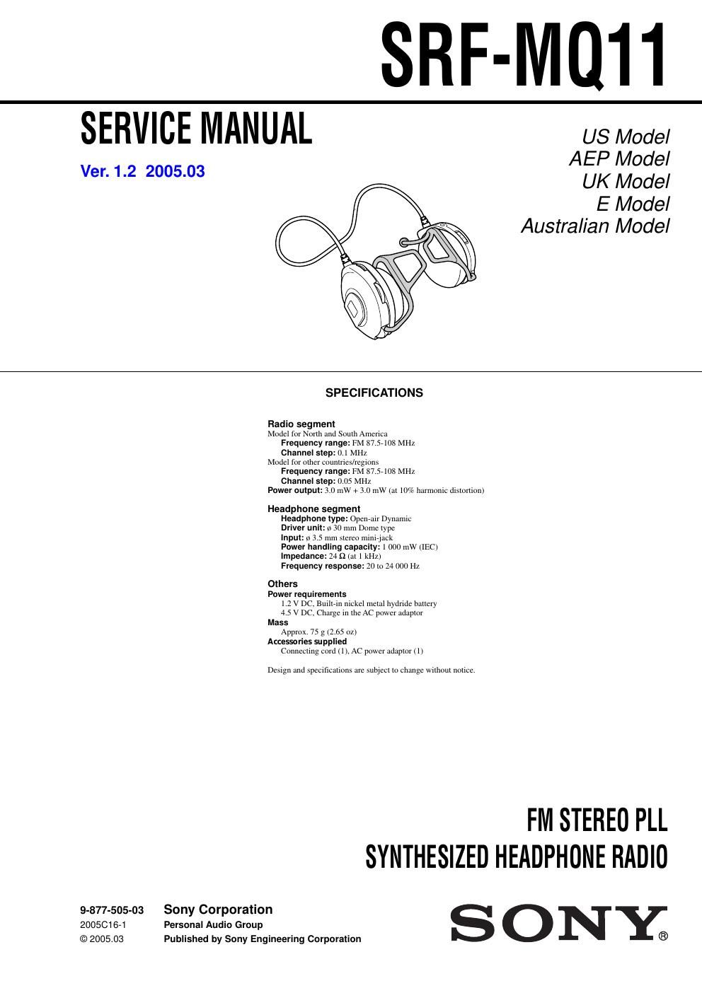 This is the 26 pages manual for sony srf mq 11 service manual.