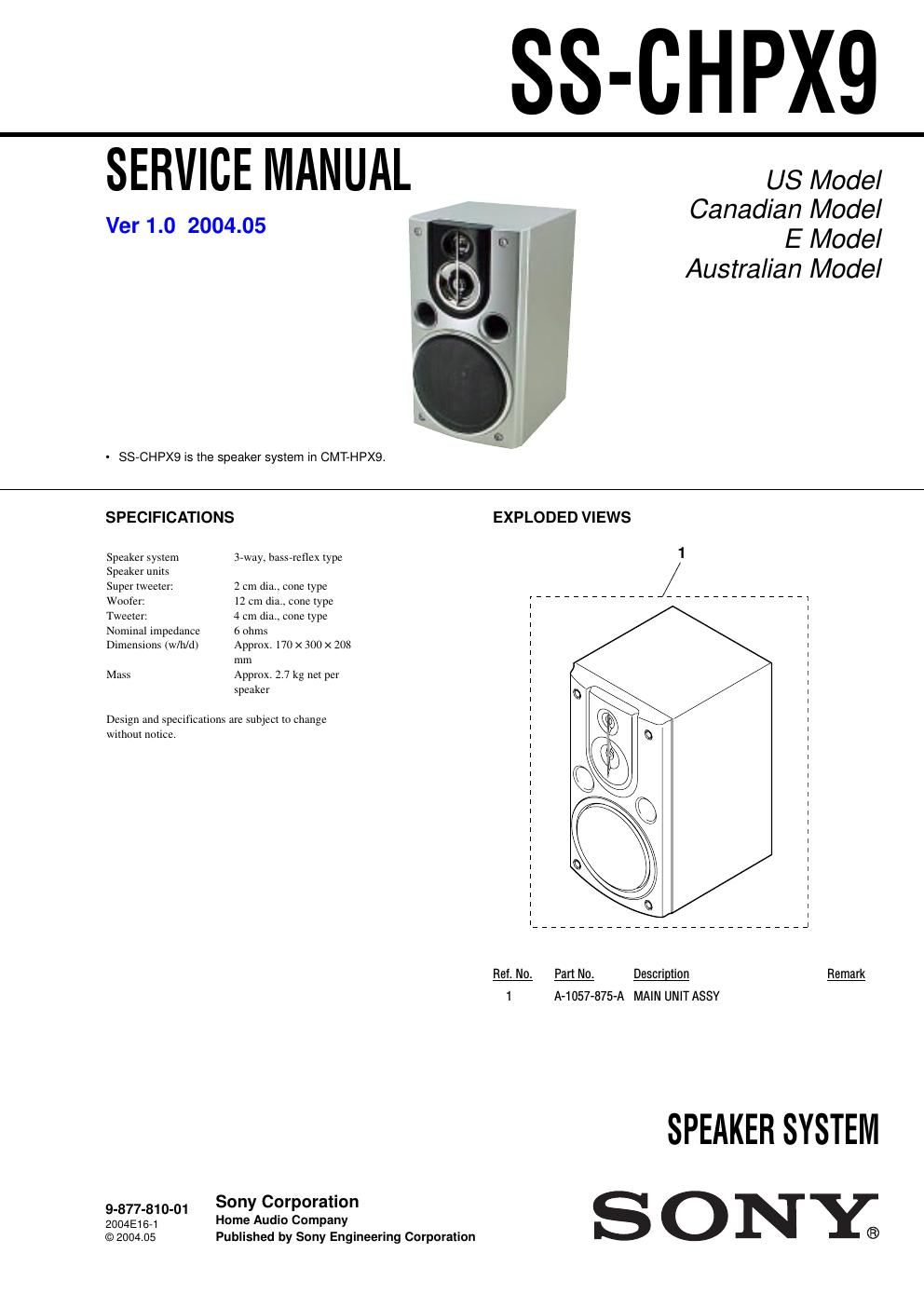 Sony ss chpx 9 service manual