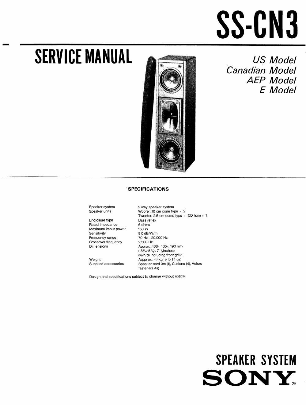 This is the 4 pages manual for sony ss cn 3 service manual.