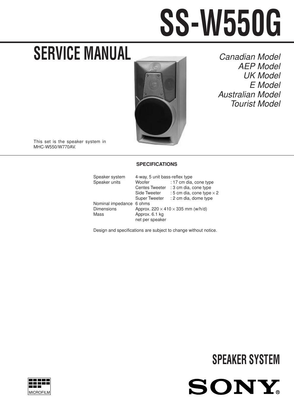 This is the 2 pages manual for sony ss w 550 g service manual.