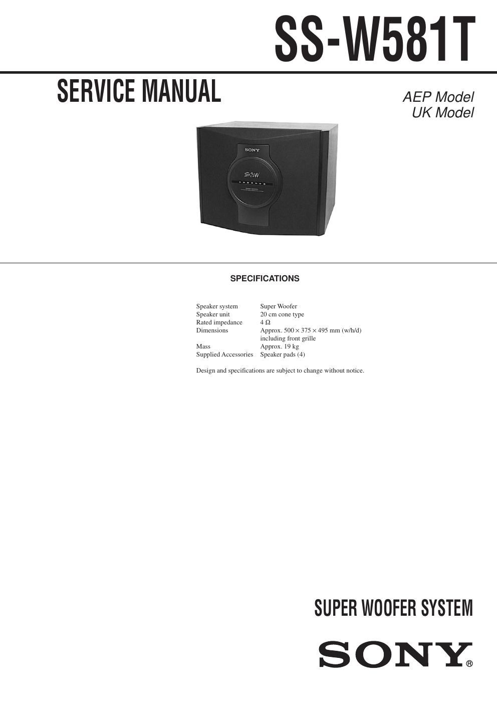 This is the 2 pages manual for sony ss w 581 t service manual.