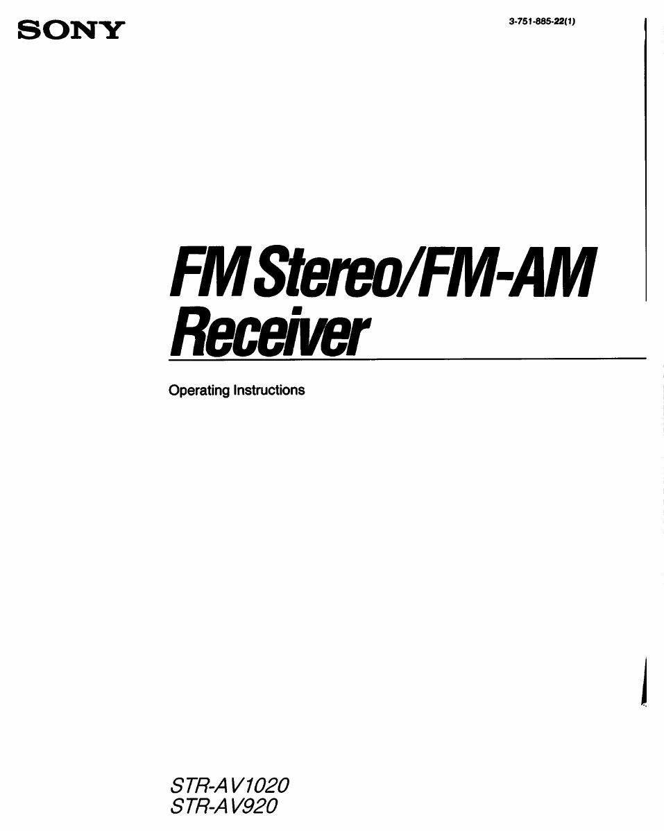 Sony STR av 920 Owners Manual