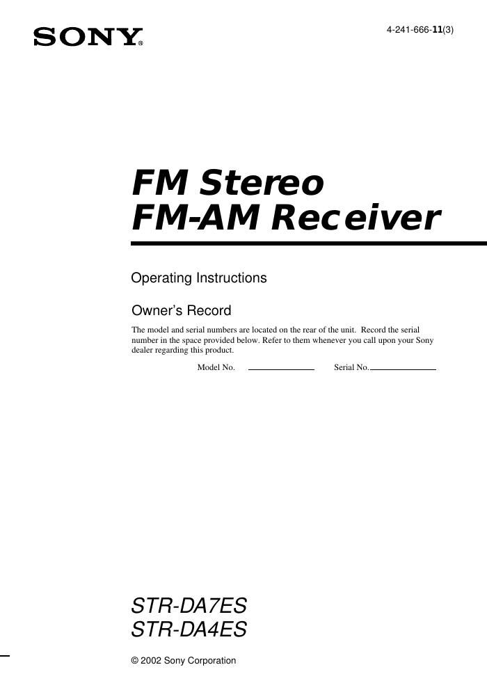 This is the 80 pages manual for sony str da 4 es owners manual.