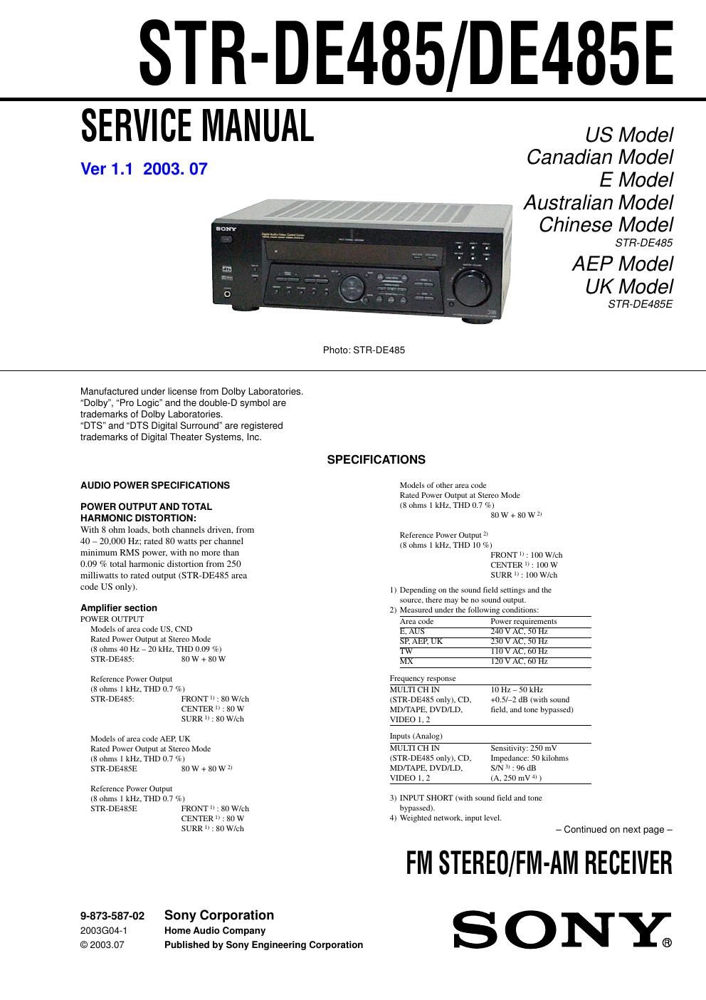 Sony str de 485e rec service manual