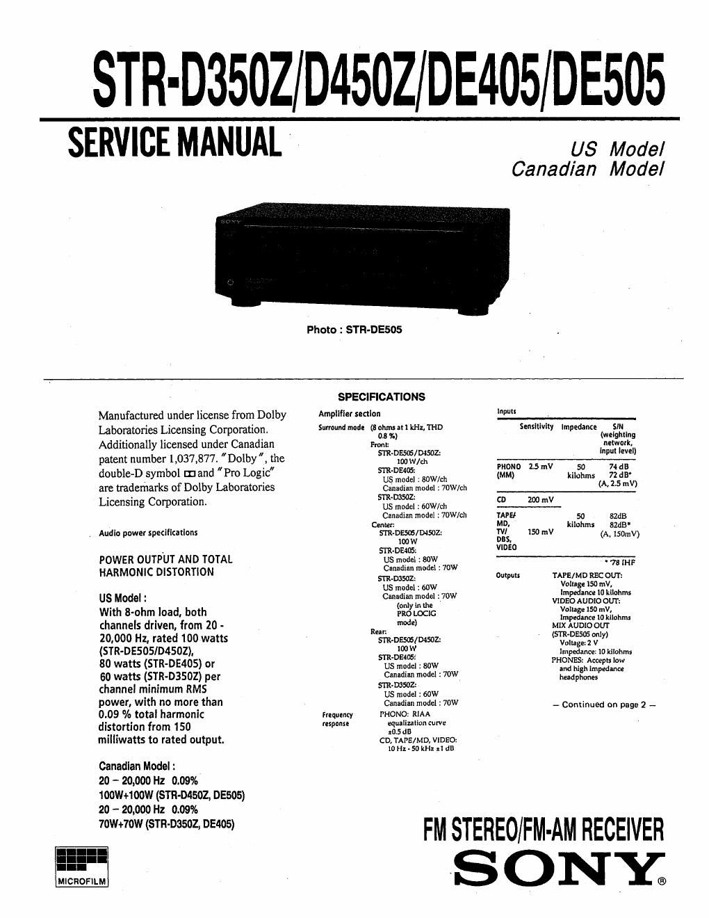 Sony str de 505 rec service manual