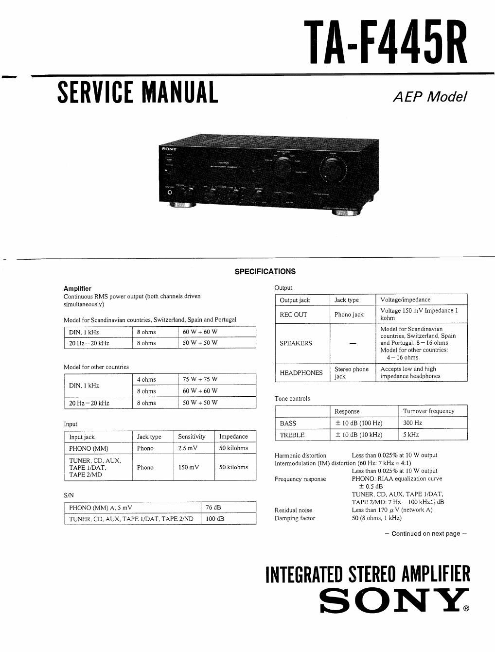 Sony ta f 445 r service manual