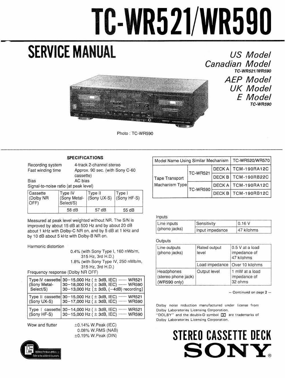 This is the 35 pages manual for sony tc wr 521 service manual.