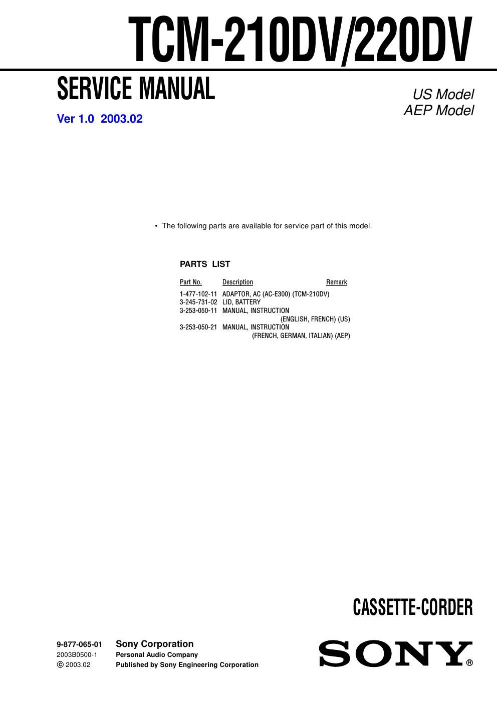 This is the 2 pages manual for sony tcm 210 dv service manual.