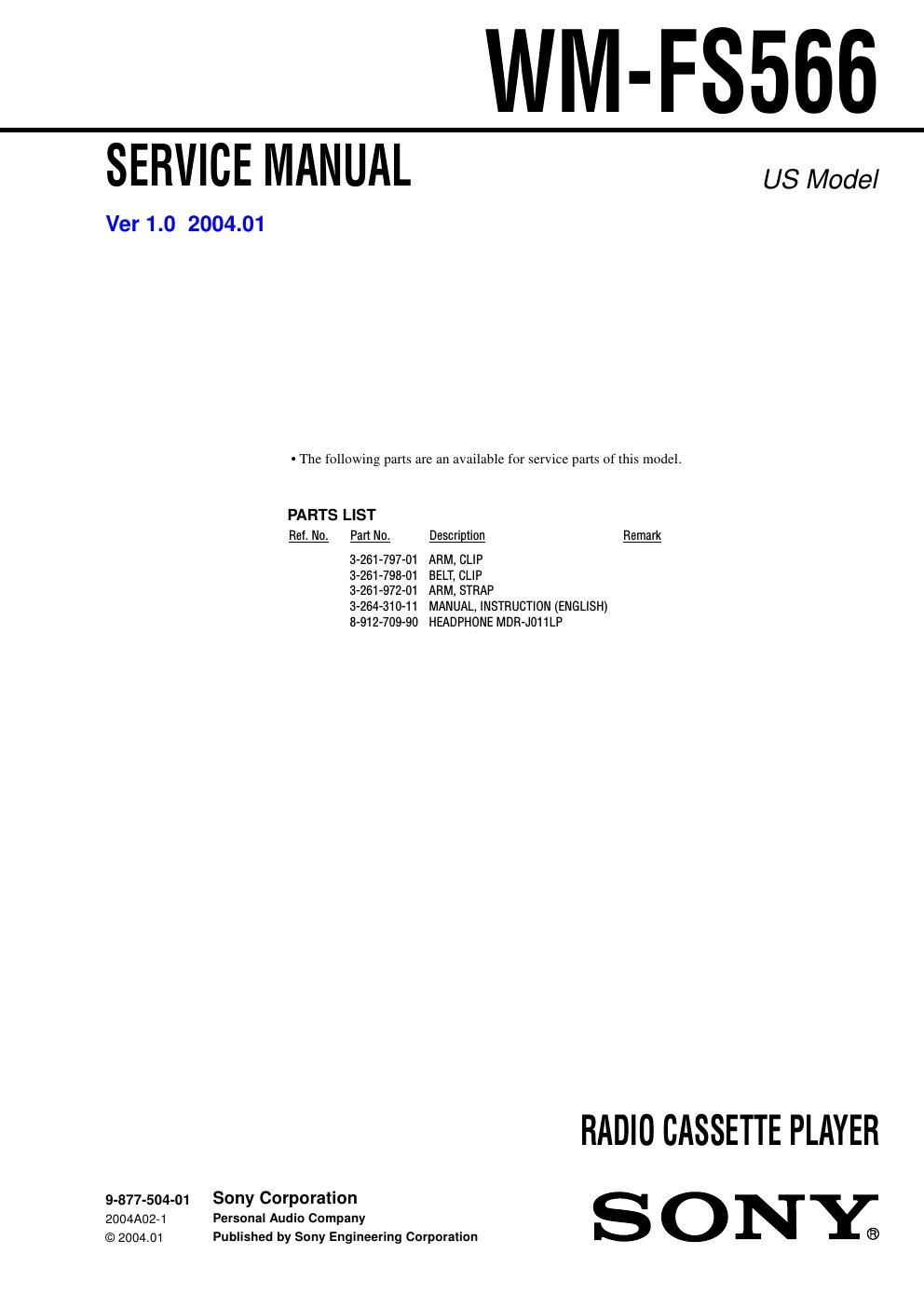 This is the 2 pages manual for sony wm fs 566 service manual.