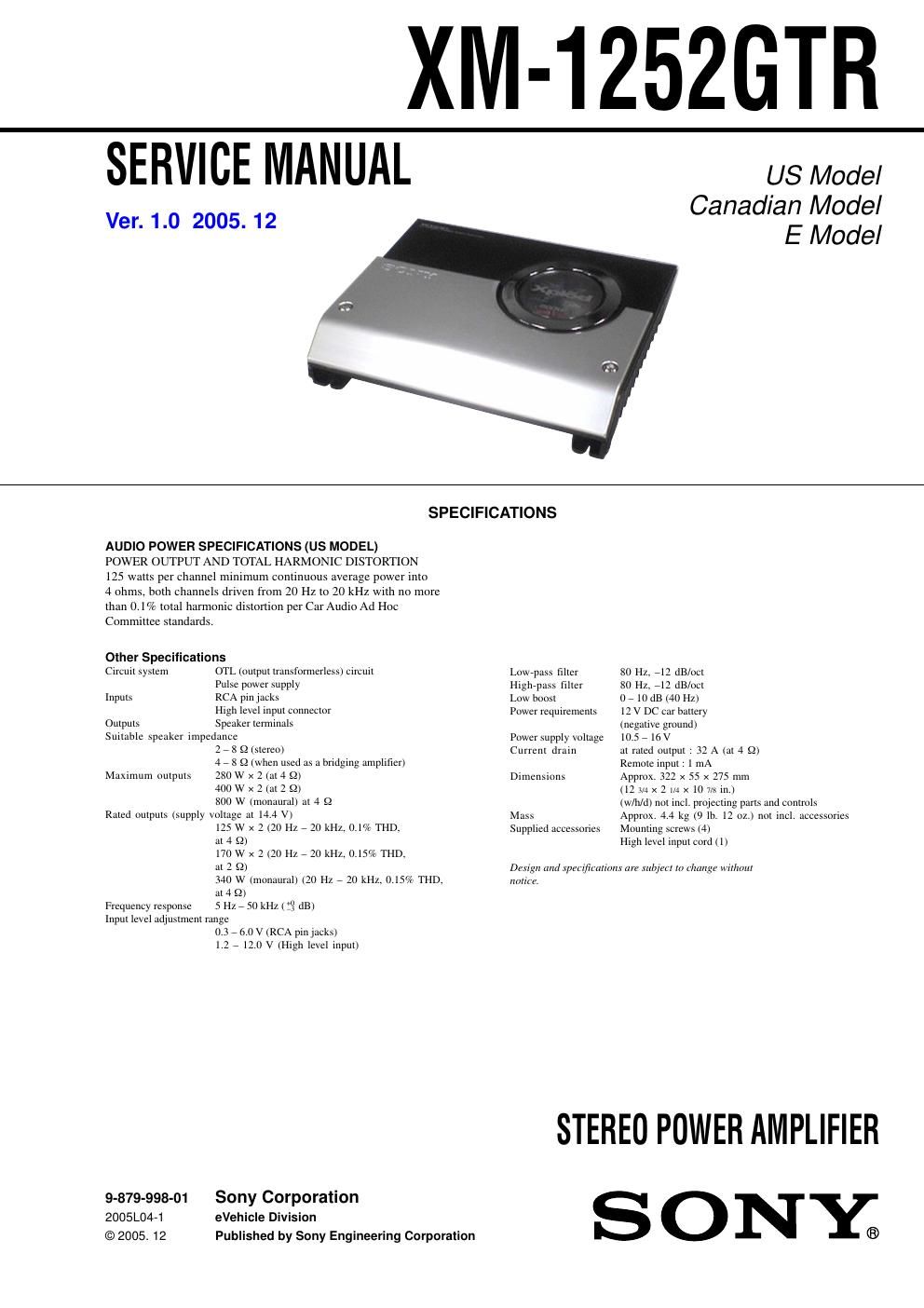 This is the 22 pages manual for sony xm 1252gtr car power amplifier.