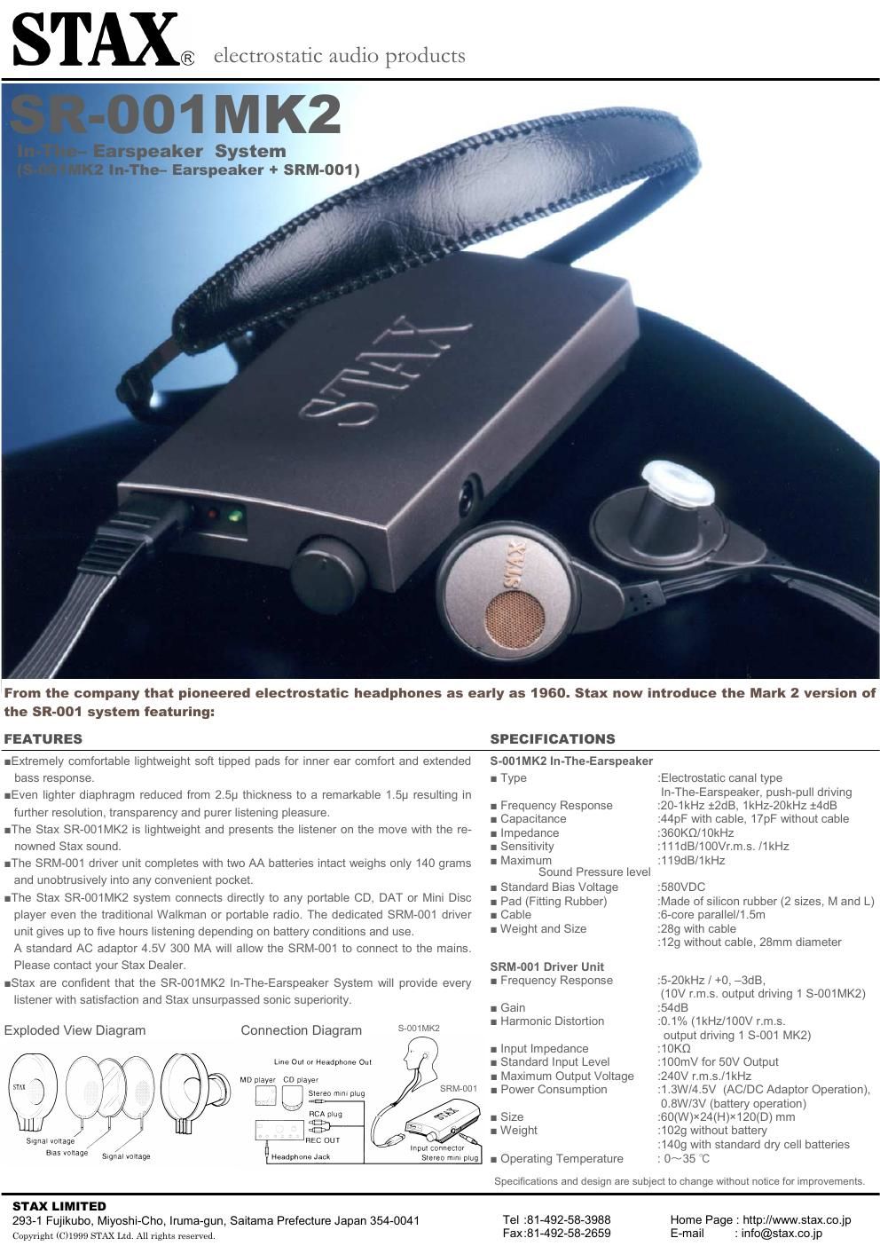 This is the 1 pages manual for stax sr 001 mk2 brochure.