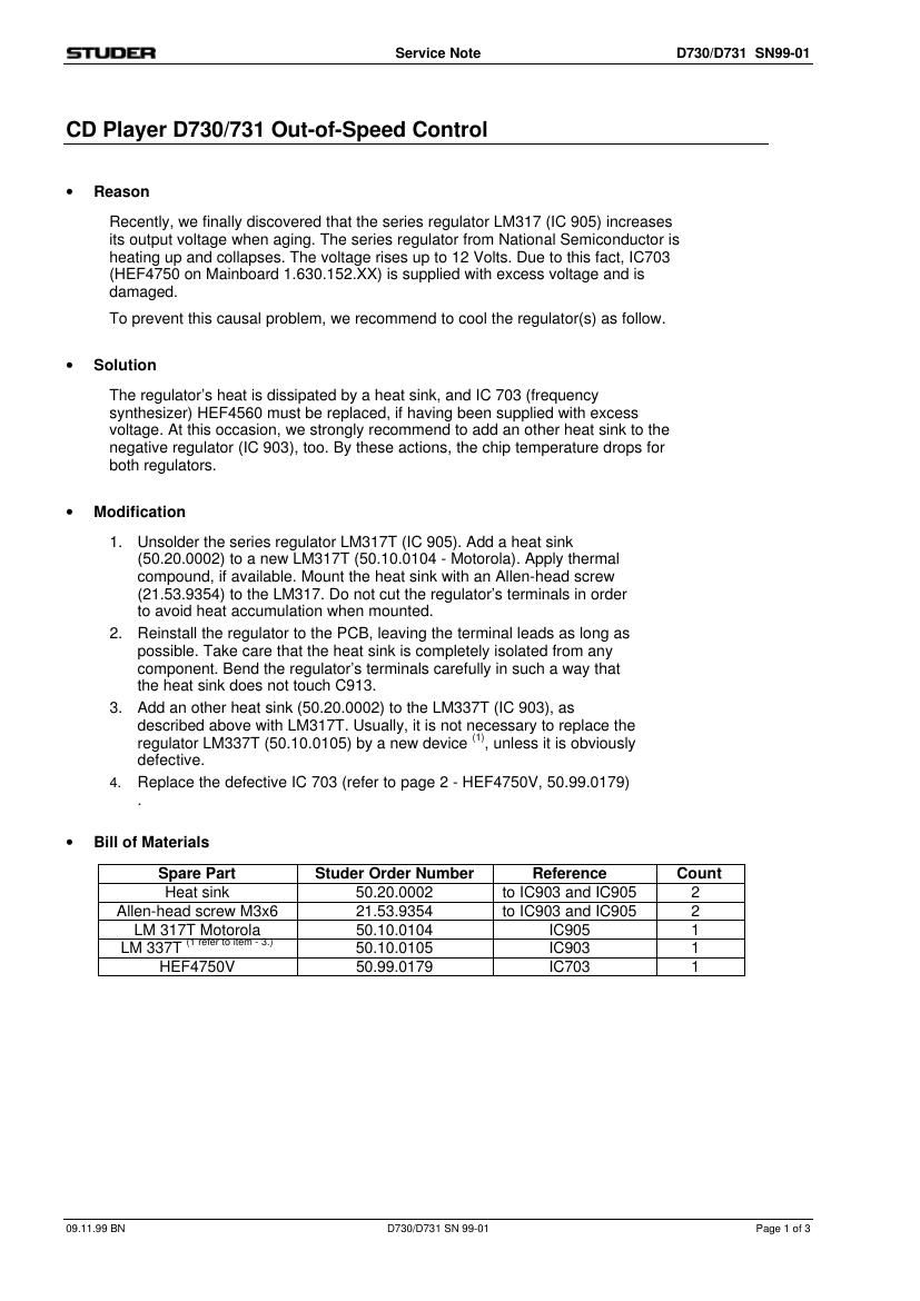 This is the 3 pages manual for studer d 730 service manual.