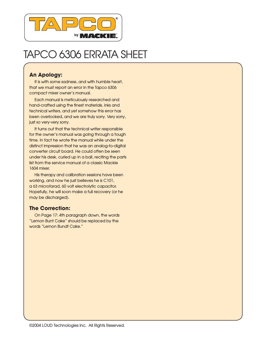 This is the 1 pages manual for tapco blend 6 owners manual.