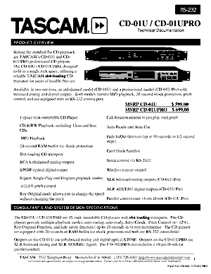 tascam cd 01u cd 01u pro brochure |