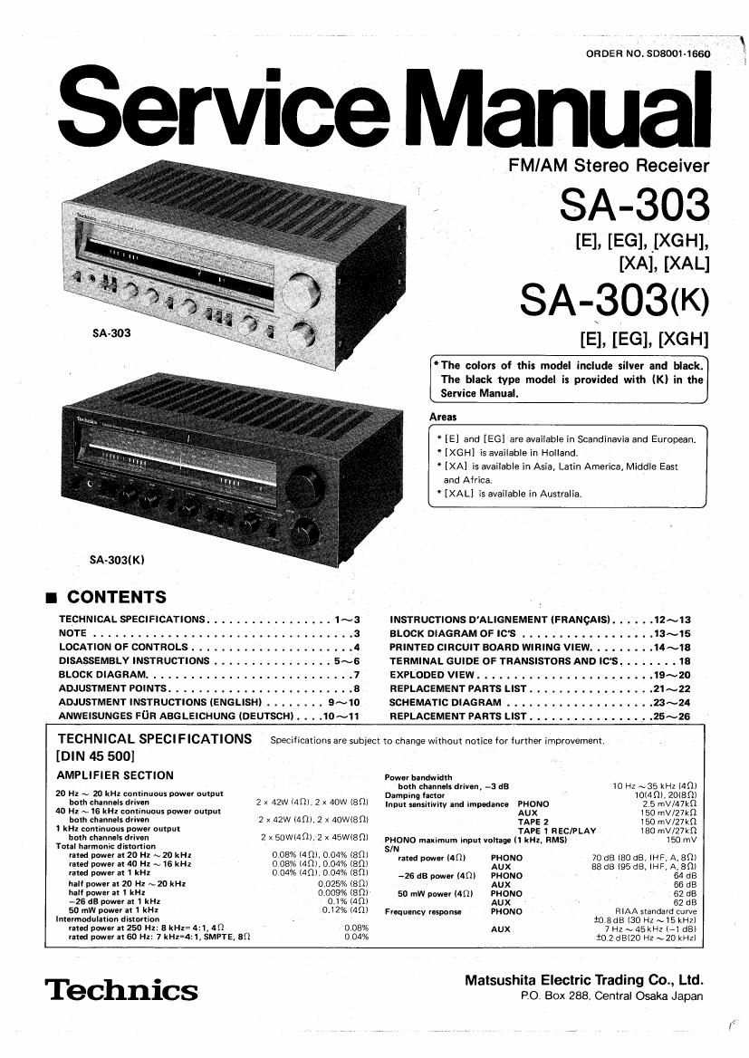 This is the 21 pages manual for Technics SA 303 Service Manual.
