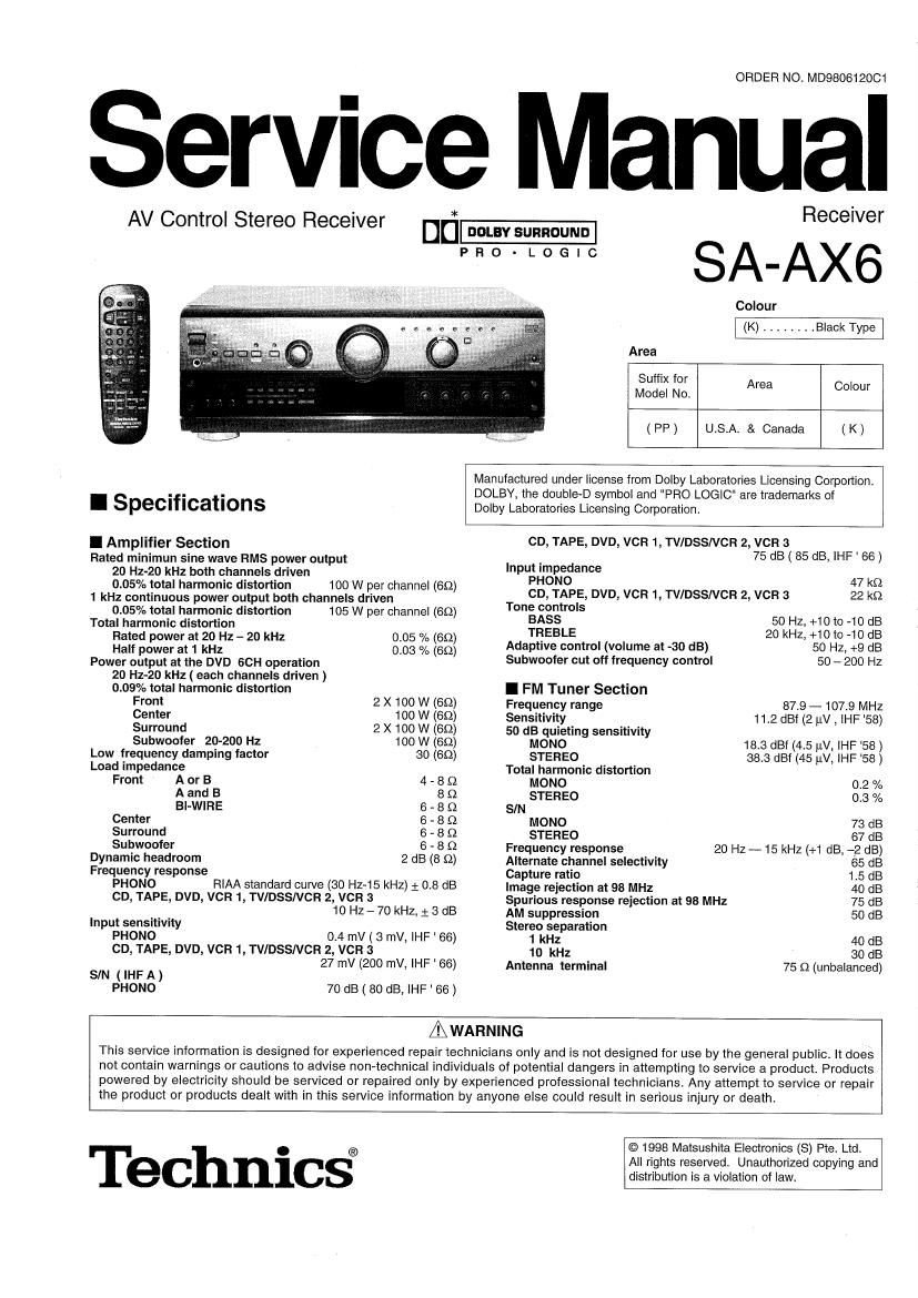 This is the 28 pages manual for Technics SAAX 6 Service Manual.
