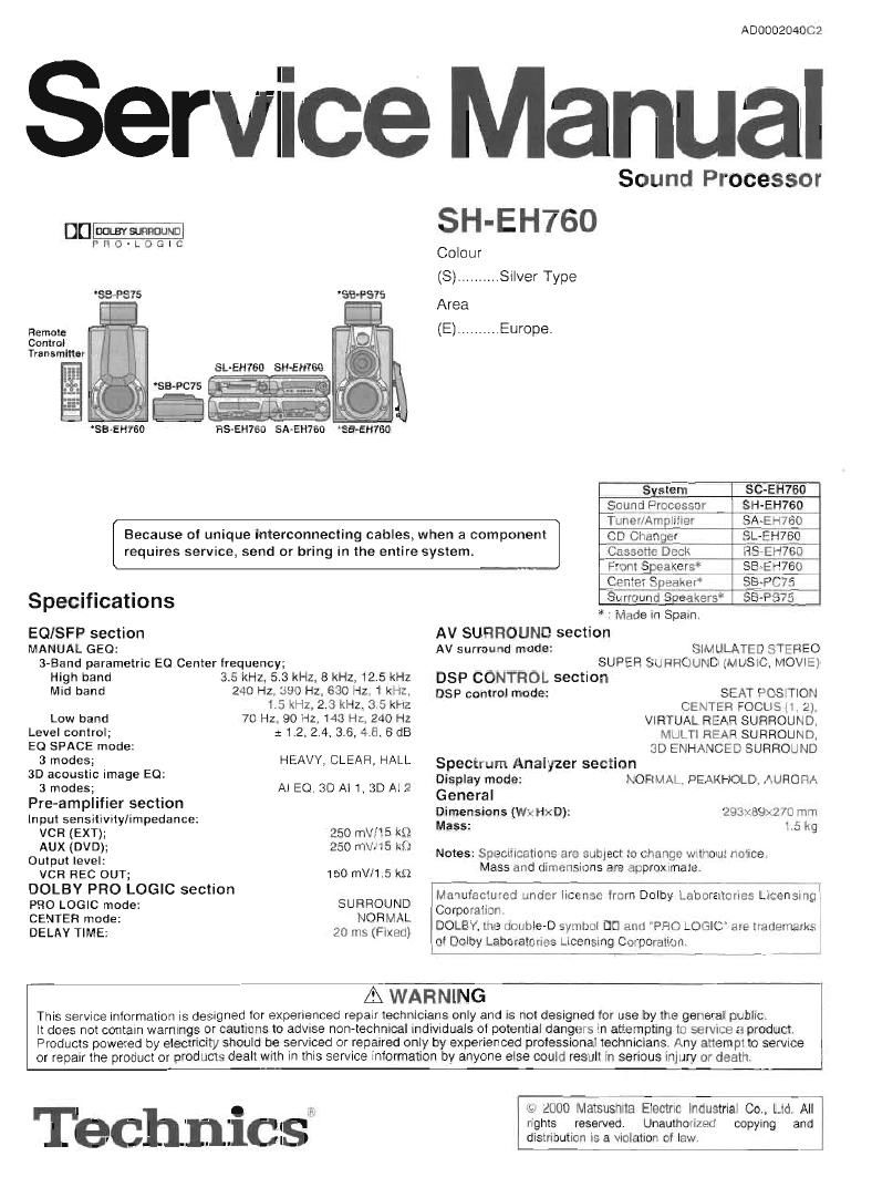 This is the 32 pages manual for Technics SHEH 760 Service Manual.